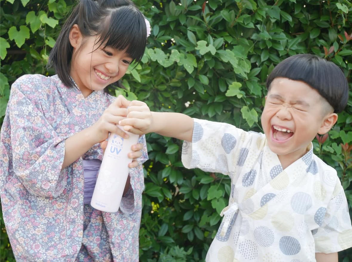 弟にもちゃんと日焼け対策として塗ってあげる😄